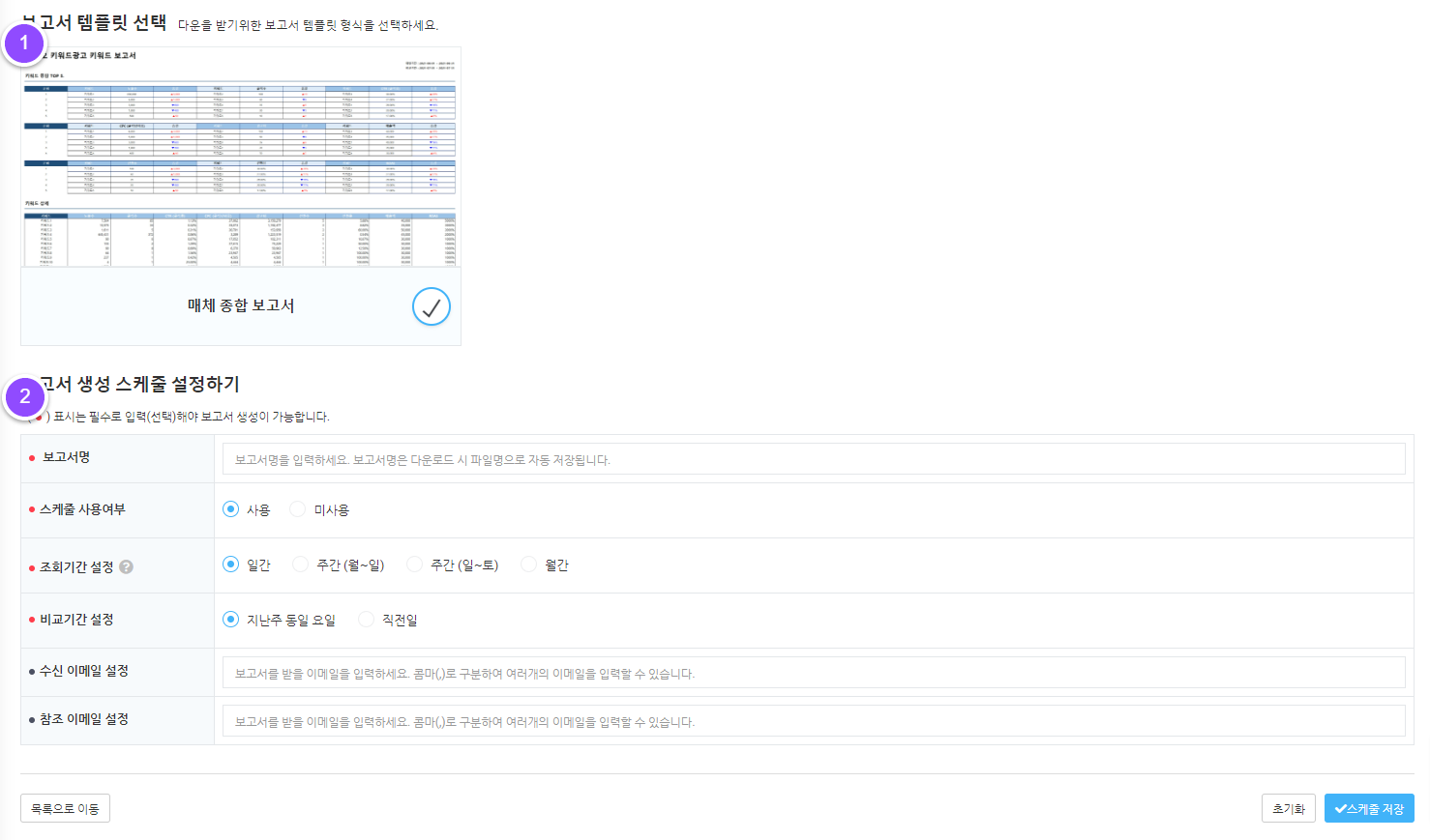 조회할 광고 대상(매체사)과 기간을 선택할 수 있습니다. 비교기간은 조회기간과 동일한 길이의 직전 기간이 자동으로 설정됩니다.