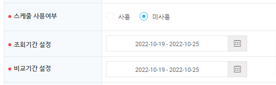 예시: 조회 기간 2021-11-01 ~ 2021-11-07(7일) → 비교 기간 2021-10-25 ~ 2021-10-31(7일)