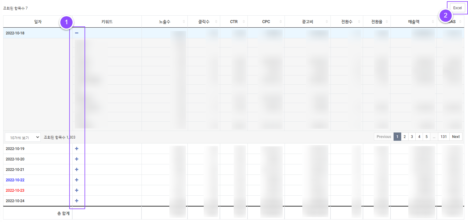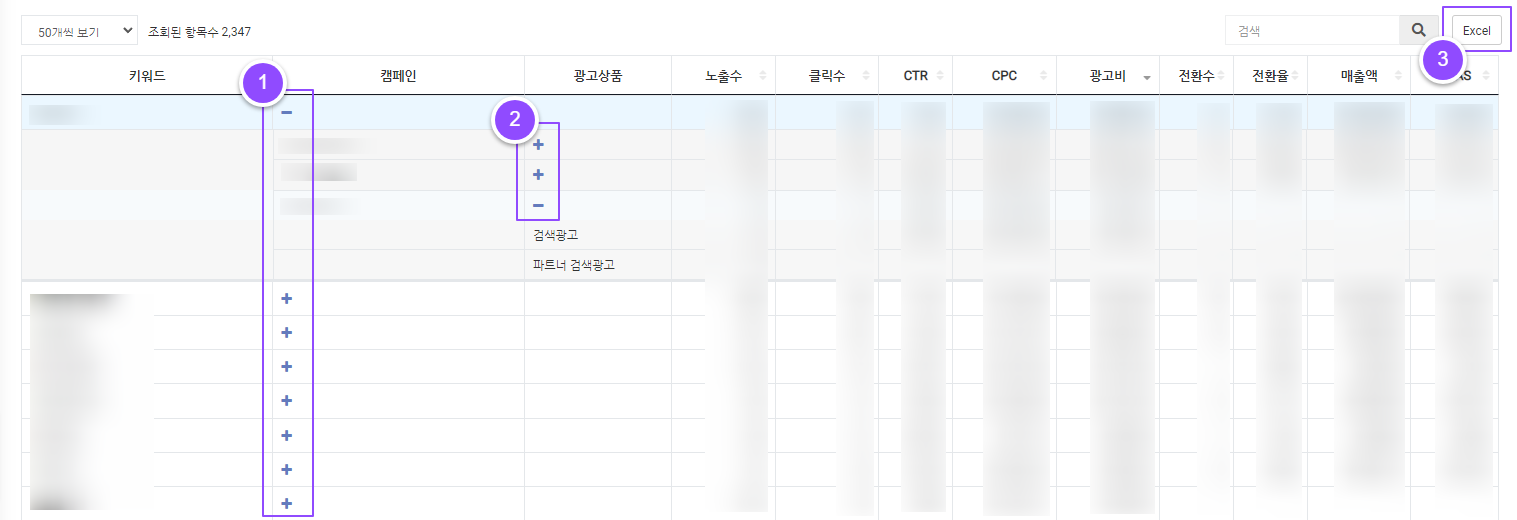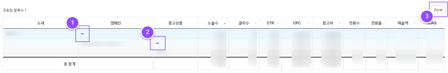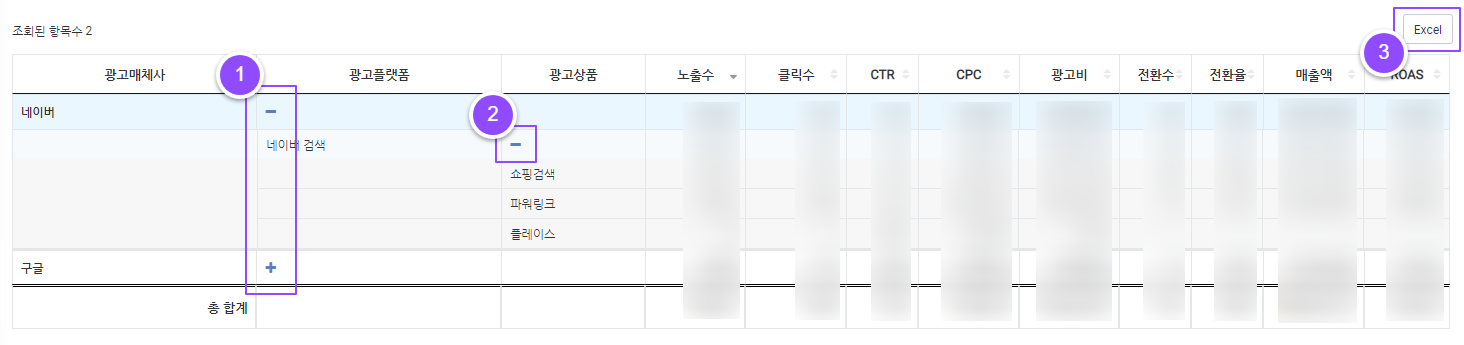 다양한 광고매체/상품의 데이터를 통합하여 공통된 광고 성과 지표를 비교 분석 할 수 있습니다. 통합된 데이터는 광고매체부터 광고상품, 캠페인, 광고그룹, 키워드 및 소재 단위까지 세분화하여 리포트에서 확인 가능합니다. 또한, 통합된 데이터를 엑셀 파일로 다운로드할 수 있어 광고매체 별로 매체사에 접속하여 보고서를 다운받고 취합하는 불필요한 업무가 줄어듭니다.