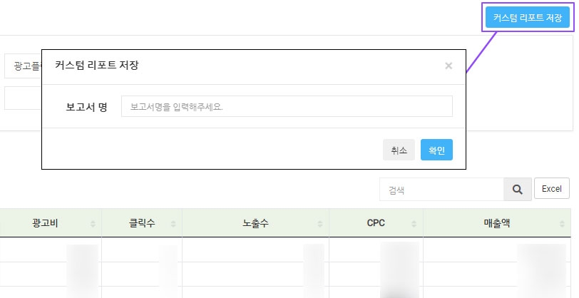 표 항목 예시: 총 광고비 / 총 광고비(이전기간)
