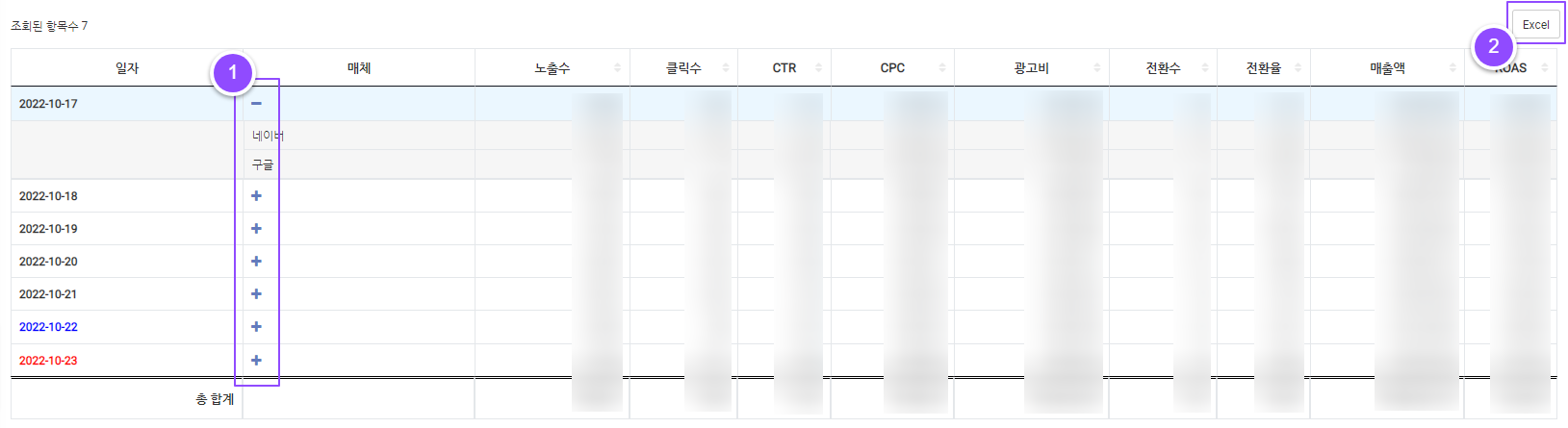 별도의 취합/가공작업 없이 광고성과 다운로드