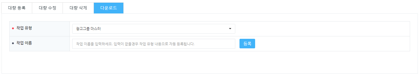 작업 유형: 광고그룹 마스터/키워드 마스터/소재 마스터/확장소재 마스터 다운로드 대상을 선택합니다.